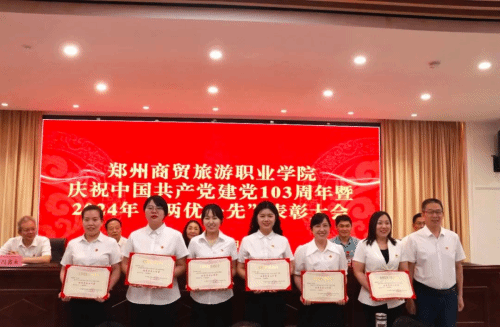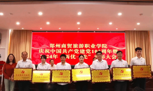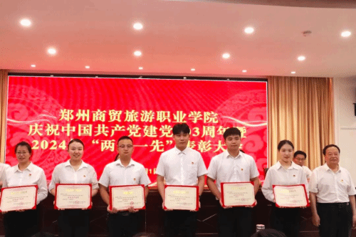 校党委副书记郭林山宣读《中共郑州商贸旅游职业学院委员会关于表彰优秀共产党员、优秀党务工作者和先进基层党组织的决定》。校领导依次为学校优秀共产党员、优秀党务工作者和先进基层党组织代表颁奖。