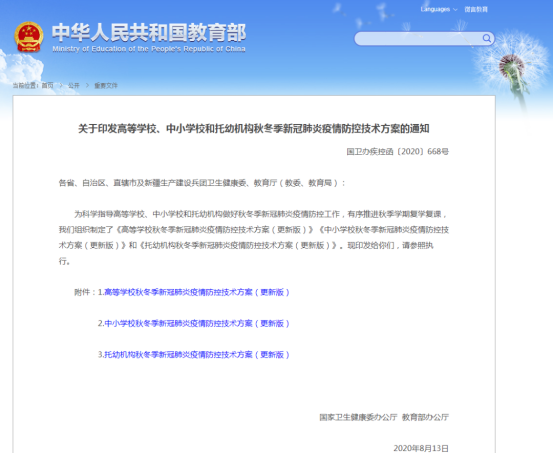 八月以来,全国各地有序推进秋季复学复课工作