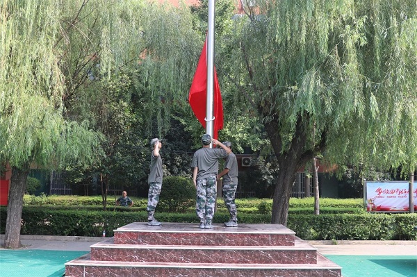 伴随着雄壮的国歌声,鲜艳的五星红旗迎风飘扬,全体人员肃立并行注目礼,军训动员大会拉开帷幕。