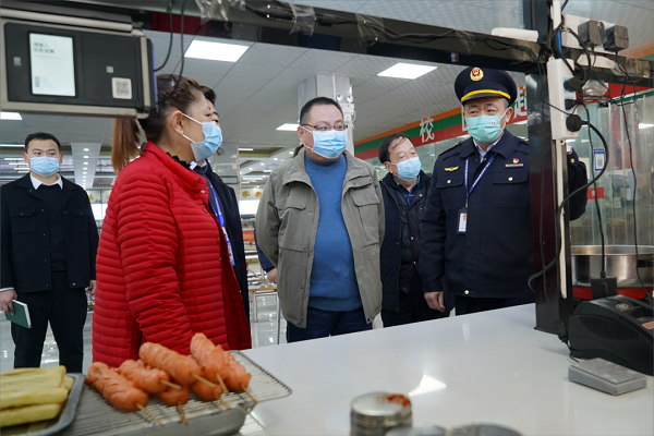 2月24日上午,中原区领导李斌,须水市场监管所所长党建军,须水街道办事处副主任来海华一行莅临我校督导检查校园食品安全工作。校长助理、后勤处处长吴刚及学校相关部门负责人陪同检查。