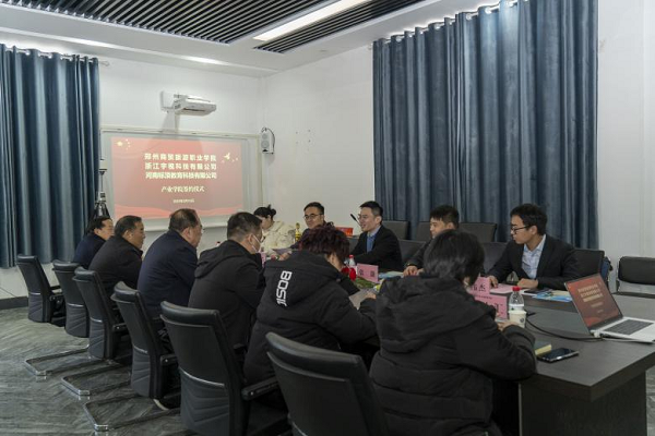 为深入学习贯彻党的二十大精神,进一步深化产教融合、校企合作,共同培养堪当民族复兴大任的高素质技能型人才,2月15日,浙江宇视科技有限公司、河南标顶教育科技有限公司与我校签署产业学院共建协议。我校董事长席青慧、党委副书记郭林山、执行副校长高海辰,浙江宇视科技有限公司总经理蒋霄,河南标顶教育科技有限公司总经理周郅杰出席签约仪式。会议由党委副书记郭林山主持。