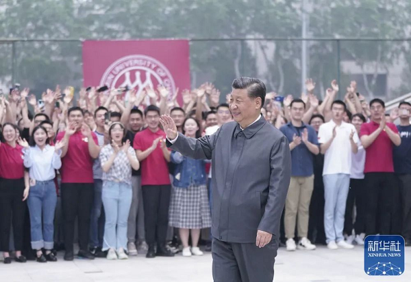4月25日上午,中共中央总书记、国家主席、中央军委主席习近平来到中国人民大学考察调研。这是习近平向师生们挥手致意。新华社记者 谢环驰 摄