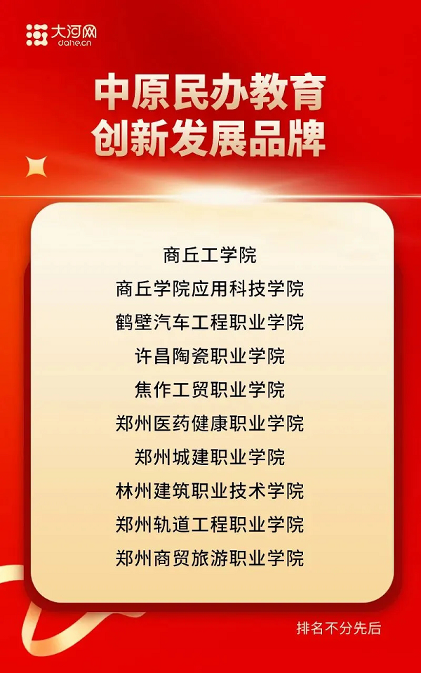 3月16日,河南日报报业集团大河网公布了河南省首届民办高校创新发展品牌建设风采展获奖名单,郑州商贸旅游职业学院荣获“中原民办教育创新发展品牌”称号!