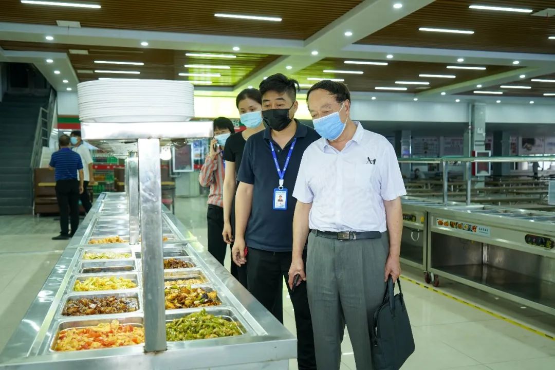 校内就餐是学生返校后的重要环节。郭林山一行现场察看了餐厅洗手消毒、测量体温、进门消毒、排队取餐、分散就餐等整个供餐流程,并对相关工作表示肯定。他指出,要严格按照相关要求,落实落细错峰错峰就餐、分批分散就餐、食品安全、环境卫生整治和网格化管理等各项制度措施,保障好广大师生的饮食安全和身体健康。