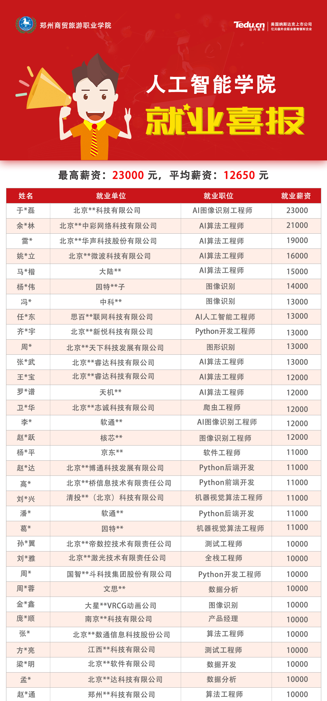 人工智能的大范围跨界融合让AI可以深入各行各业,学习人工智能使人生迸发无限可能。郑州商贸旅游职业学院人工智能学院提供专业的AI教学与实操,专业开设包括基础理论、Python语言在内的众多实用课程,确保广大学员学到真正有竞争力的、社会紧缺的技术技能。