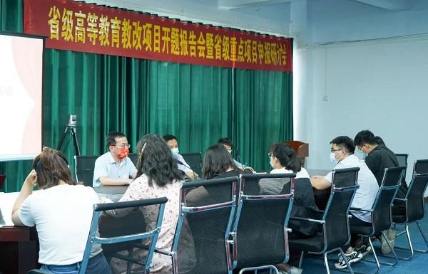 教务处副处长郭小汇介绍了各位到场专家与校领导,并对本次获批立项的省级教改研究项目基本情况进行了汇报。随后,省级教改项目主要负责人乔辉辉、秦若兰从研究背景、研究内容、实施方案、研究目标、经费预算、预期成果等方面进行了详细汇报。专家组从研究内容、研究方法、研究过程、预期成果等多角度进行了细致点评,并对各项目实施的可行性进行评估,提出了建设性指导和建议。经讨论,专家组一致同意2项课题全部开题。
