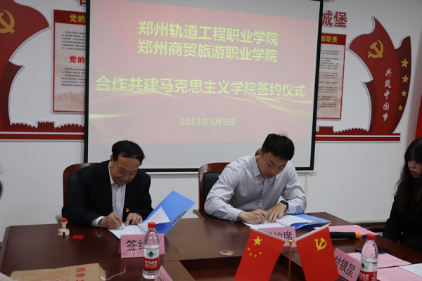 周珂院长与郭林山书记分别作为两校代表签署了《郑州轨道工程职业学院、郑州商贸旅游职业学院思政教育共建合作协议》,这标志着我校马克思主义学院与郑州轨道工程职业学院马克思主义学院正式开启深度合作新篇章。双方合影留念,为合作共建仪式画上了圆满的句号。