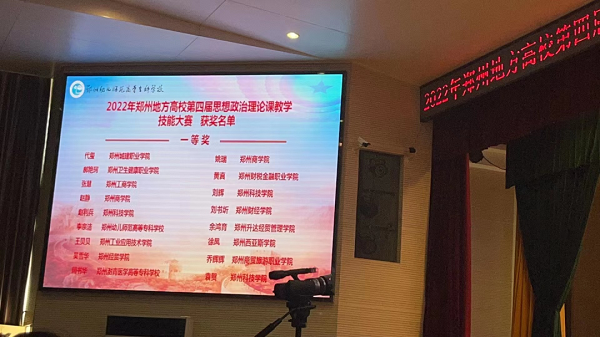 6月21日至24日,由郑州市委宣传部、郑州市教育局主办的郑州地方高校第四届思想政治理论课教学技能大赛在郑州幼儿师范高等专科学校举行,共有来自31所郑州地方高校的121名选手参加了现场展示,我校思政部教师乔辉辉、完颜莹莹分别荣获一等奖、二等奖。