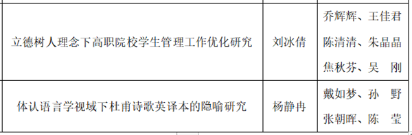 多个市厅级课题成功立项,有利于提升我校教师的科研自信心,激发科研积极性。下一步,学校将继续营造浓厚的科研氛围,创新科研机制,凝聚科研团队,推进产学研深度融合,不断推动学校科研工作高质量发展。(通讯员 :乔辉辉)
