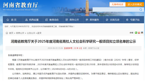 近日,河南省教育厅下发《2025年度河南省高校人文社会科学研究一般项目拟立项名单》,我校2个项目拟获批立项。
