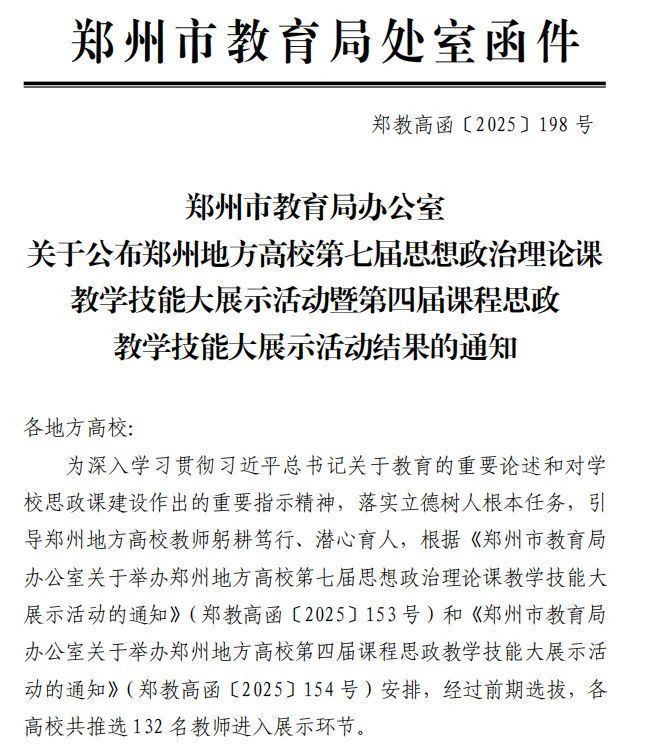近日,由郑州市委宣传部、郑州市教育局主办,郑州地方高校思想政治理论课教学指导委员会承办、郑州健康学院协办的郑州地方高校第七届思想政治理论课教学技能大展示暨第四届课程思政教学大展示圆满落幕。我校财经商贸学院张珊珊老师在课程思政教学技能大展示中荣获二等奖,马克思主义学院孙悦、聂妤老师在思想政治理论课教学技能大展示中荣获二等奖。