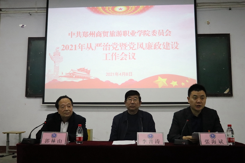 2021年4月8日下午,我院在东楼学术报告厅一召开2021年全面从严治党暨党风廉政建设工作会议,传达学习上级全面从严治党工作会议精神,部署2021年工作任务。院党委书记李普涛,院党委副书记郭林山、院党委副书记张海斌,副院长巴玉强、副院长王素湘,全体教职工,在校党员等参加会议。院党委副书记张海斌主持会议。