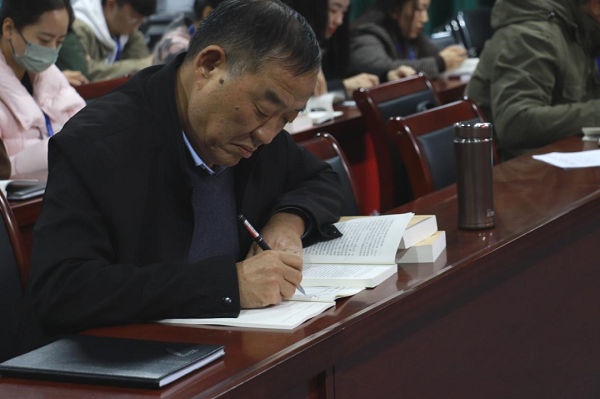 校党委副书记郭林山以《用习近平新时代中国特色社会主义思想凝心铸魂》为题,从用心上好“信仰课”、用绩上好“专业课”、用情上好“廉洁课”、用能上好“实干课”四个方面作专题党课。郭书记指出,本期读书班聚焦“学思想、强党性”,旨在从领导干部做起,沉下心来通读、精读、研读原著原文原理,在深化、内化、转化上下功夫,以读书班高质量推动主题教育扎实开展、走深走实。全体干部要全面把握主题教育的总体要求,紧紧围绕学深悟透习近平新时代中国特色社会主义思想,牢牢把握“学思想、强党性、重实践、建新功”的总要求,紧扣立德树人根本任务,在推动主题教育走深走实上下功夫,坚持学思用贯通、知信行统一,将习近平新时代中国特色社会主义思想转化为坚定理想、锤炼党性和指导实践、推动工作的强大力量。