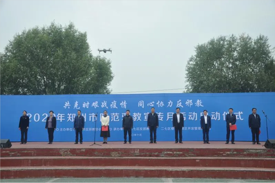 由郑州市反邪教协会组织召开的2020年度郑州市(防反邪教宣传月)启动仪式在郑州市二七区樱桃沟景区管委会樱桃沟广场举办。郑州市科协、郑州市政法委员会的领导、郑州市反邪教协会、各区县反邪教协会的领导参加了会议并讲话。
