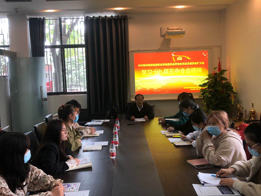 2020年10月31日(星期六)上午,学院学生处党总支召开扩大会议,认真学习中共十九届五中全会精神,参会人员有党总支和各党支部的领导及部分学生党员和积极分子代表,学院党委书记郭林山主持并组织本次学习。