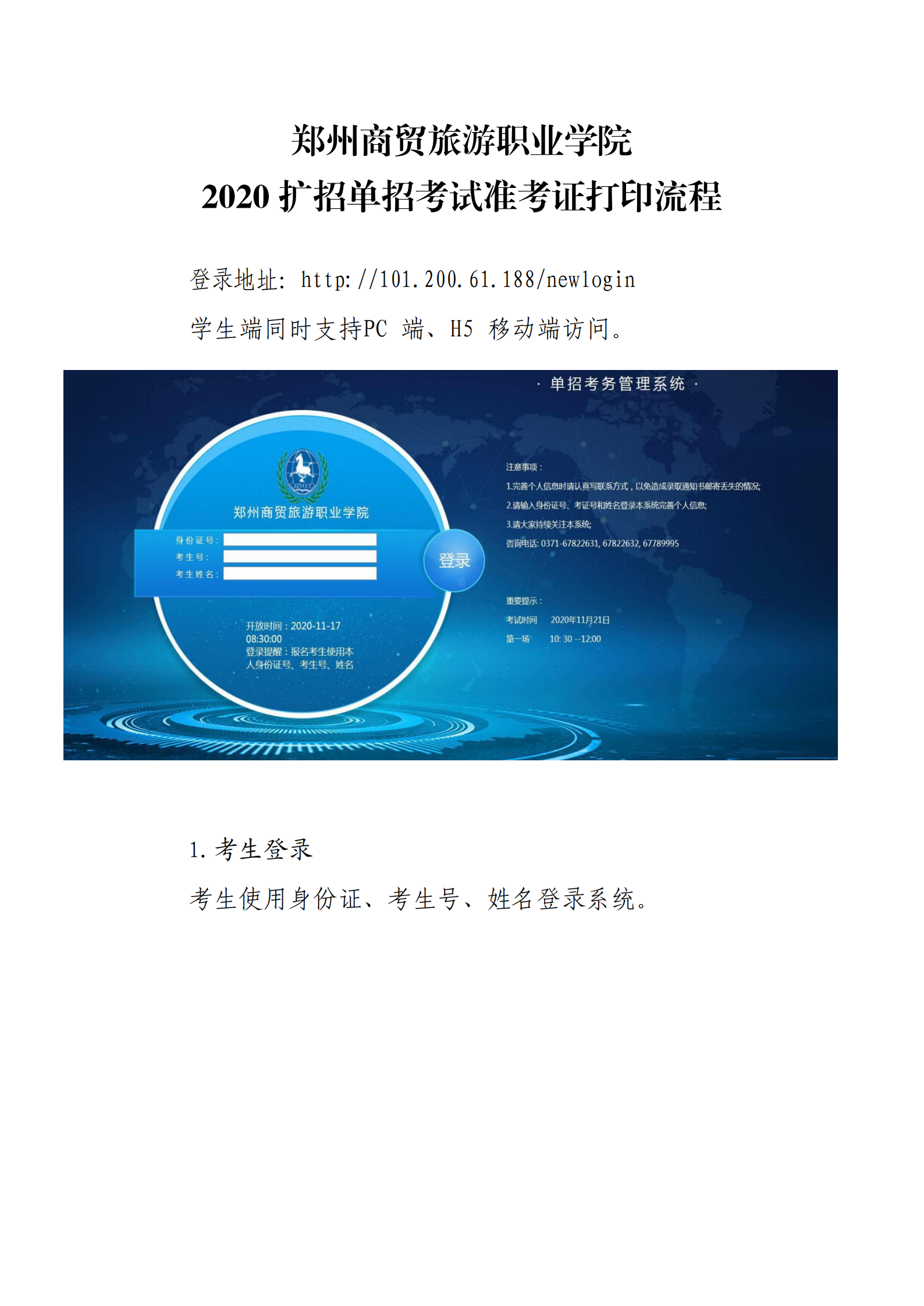 2020年高职扩招单招考试准考证打印流程