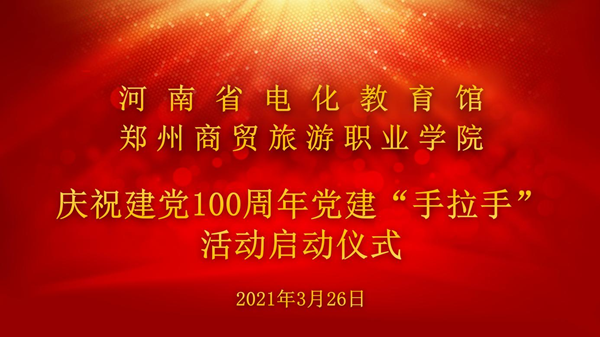 2021年3月26日下午,河南省电化教育馆、郑州商贸旅游职业学院庆祝建党100周年党建“手拉手”活动启动仪式,在郑州商贸旅游职业学院四楼会议室隆重举行。