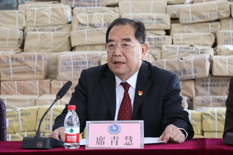 随后,学院董事长、院长席青慧和中原出版传媒集团党委书记、董事长郭元军举行了图书捐赠交接仪式,并致感谢辞。