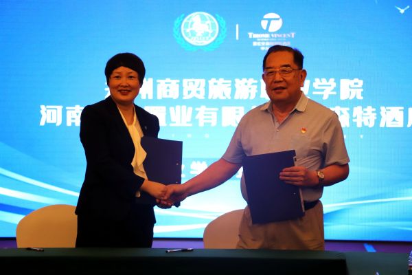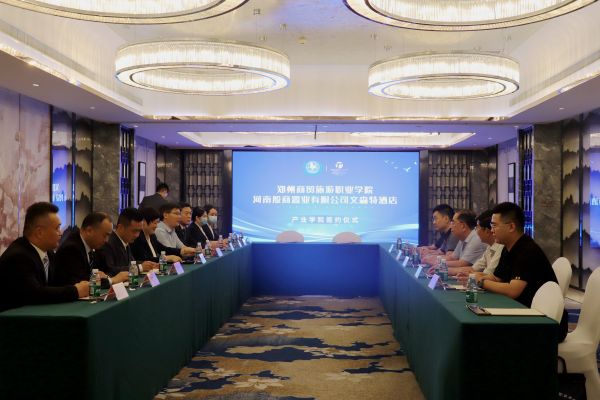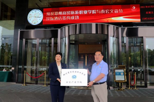 2021年7月2日,“郑州商贸旅游职业学院泰宏产业学院”签约仪式在泰宏文森特国际酒店二楼会议室举行。这是继我院与河南八六三软件股份有限公司签订共建八六三软件产业学院协议后,又一深化产教融合的重要举措。我院董事长席青慧,党委书记李普涛,党委副书记张海斌,教务处处长张明强,校企合作办主任李万银出席签约仪式。泰宏文森特国际酒店总经理阴宏滨,副总经理董壮立,集团品牌总监蒋孝文等相关部门领导出席签约仪式。泰宏文森特国际酒店人力资源部主管贾东主持会议。