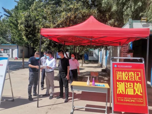 赵振江书记一行先后到校门口、教学楼、宿舍、餐厅、校医室、物资储备室、隔离观察室等地进行了检查指导。在校门口,督导组询问了门卫值守制度,了解了学校开学后关于疫情防控“严把入门关”的相关措施。在教学楼,督导组对教室、洗手间、开水间等场所进行了详细查看。查看学生宿舍和餐厅时,督导组详细听取了学校对开学后住校生学生住宿、健康监测、宿舍消杀、学生就餐等方面所做的预案。在学校物资储备室,督导组详细了解了口罩、测温枪、防护服、消毒液等疫情防控物品的储备数量,对学校较为充足的物资储备给予了肯定。督导组还专门查看了学校设置的隔离观察室,并就隔离工作的具体操作进行了详细的询问。