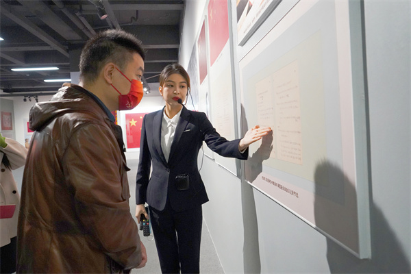 在讲解员的引导下,我校师生驻足观摩每一件珍贵展陈,仔细品味每一个历史节点,全面感受到了旗帜的信仰之光和力量之源。通过300多张照片、100多件档案、4个多媒体视频,党旗、国旗、军旗诞生的光辉历程深刻展现在了在场师生的眼前,大家通过党旗、国旗、军旗的诞生历程展区,在时光流转和激荡变换中再次领略了一百年来中国共产党团结带领全国各族人民为争取民族独立、人民解放,实现国家富强、人民幸福进行的前赴后继、感天动地的奋斗历程。