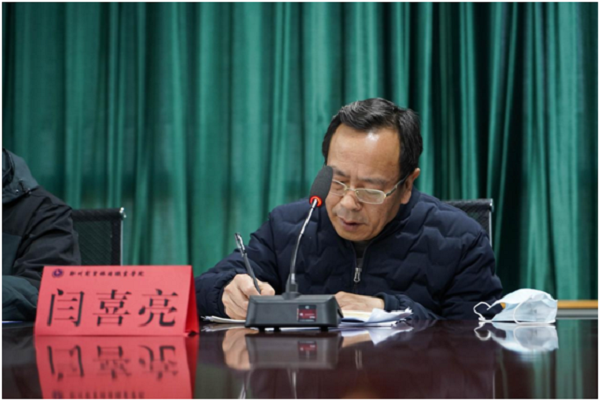教务处处长闫喜亮首先致辞,他谈到,百年大计,教育为本。大学教师对学生承担着传授知识、培养能力、塑造正确人生观的职责。他强调,广大教师要自觉遵守学校的规章制度,牢固树立底线意识,坚守为党育人、为国育才初心,不断涵养高尚师德,做党和人民满意的“四有”好老师。
