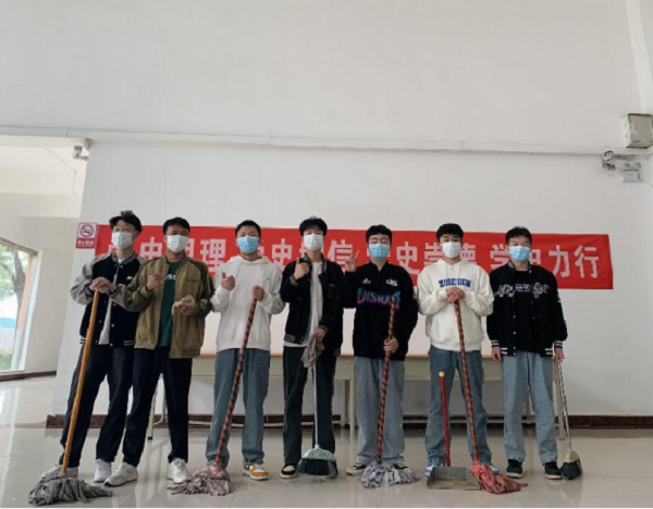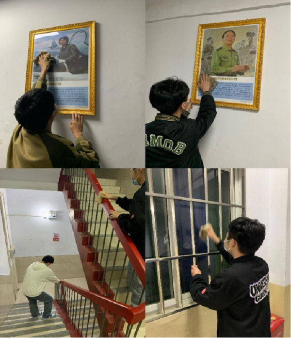 活动开始,辅导员毛亦豪带领着同学们拿着劳动工具,奔向行政楼,大家热火朝天地开始进行大扫除。他们有的将扶手擦得干干净净,有的将地面清扫得一尘不染,有的将地面拖得如镜面般发亮,同学们就像一个个跳跃的音符,共同串起了激昂生动的“劳动号子”。尽管同学们累得满头大汗,但依然发扬了不辞辛苦、不怕脏累的精神,以忘我的奉献绘就了校园温暖的风景。