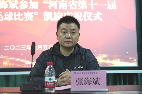 庆祝仪式上,张海斌副书记向大家讲述了本次参赛的经过,同时感谢学校给予的关心与支持,并结合个人经历向在座师生分享了四点感悟:一是勤学苦练,增强本领。二是精诚协作,竭诚奉献。三是努力拼搏,奋勇争先。四是越到关键时刻,越要沉着应对。张海斌副书记表示,学校正在进行学习贯彻习近平新时代中国特色社会主义思想主题教育,我们要坚决贯彻好落实好习近平总书记的指示批示精神,落实好新时代党的教育方针,坚持为党育人,为国育才,培养德智体美劳全面发展的社会主义建设者和接班人。希望广大师生积极参与体育健身运动,强健体魄、砥砺意志,充分彰显郑商旅院师生学子的良好风貌,推进学校体育工作全面发展。