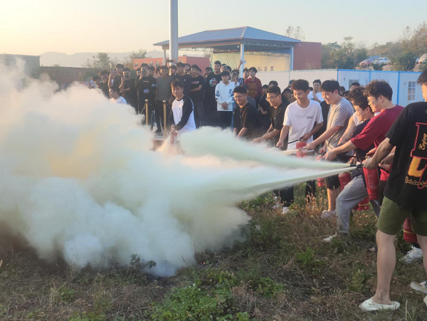 随后,消防战士亲身示范,开展消防战斗服穿戴及注意事项培训,并对一人两盘水带连接、灭火器的使用、实地灭火操作等多项应急程序进行综合演练。在消防官兵示范教学后,教职工代表分组进行了技能竞赛和业务比拼,部分师生、员工代表进行了实地灭火操作,随着火源的熄灭,消防安全演练圆满结束。