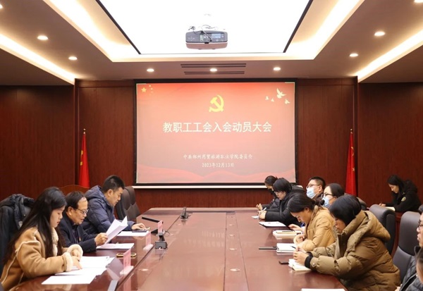 12月13日下午,我校在中原校区四楼会议室顺利召开教职工工会入会动员大会,校党委副书记郭林山、张海斌出席会议,各党总支、教师党支部书记参加会议。会议由张海斌书记主持。会议采用线上线下相结合的方式进行。