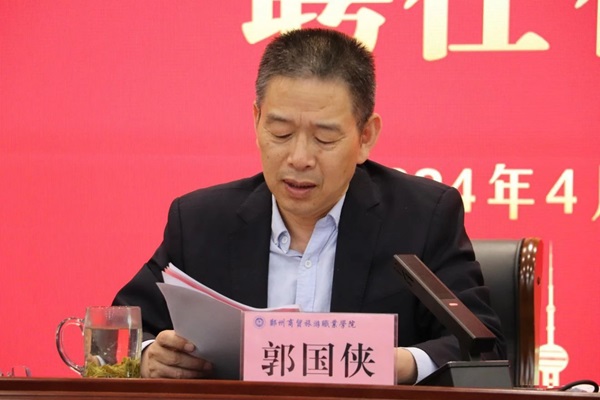 4月17日下午,我校在中原校区学术报告厅举行专业技术职务聘任仪式,校长郭国侠,党委副书记郭林山,副校长冯鑫永、康勇出席会议,各学院院长、副院长、教学秘书、教务处全体人员、相关职能部门负责人、2023年度获评助教和讲师拟聘任人员参加会议。会议由副校长冯鑫永主持。