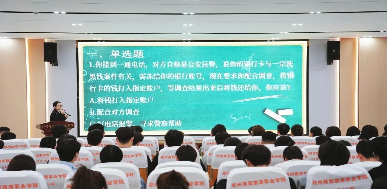 为进一步提升师生防范电信网络诈骗的意识和能力,4月16日下午,我校新密校区联合西大街派出所反诈中心,在公共教学楼1001报告厅举办“筑牢反诈防线,共建平安校园”专题培训讲座。各二级学院辅导员、学生代表及宿舍长等200余人参与,共同织密校园反诈防护网。