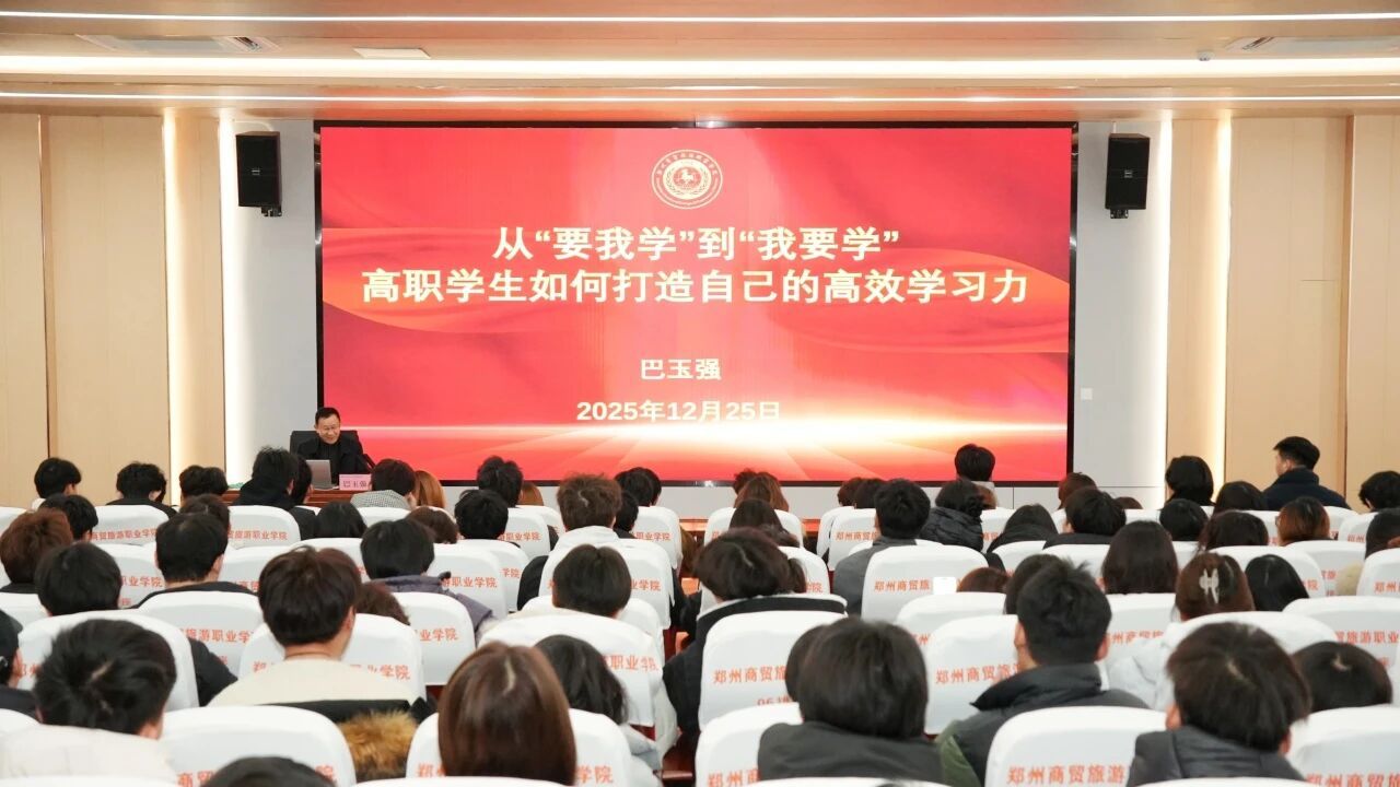 为引导我校学子提升高效学习力,筑牢技能成才根基,12月25日,我校副校长巴玉强在新密校区学术报告厅为2025级各二级学院班长、团支书、学习委员及学生检查组代表讲授专题思政课。