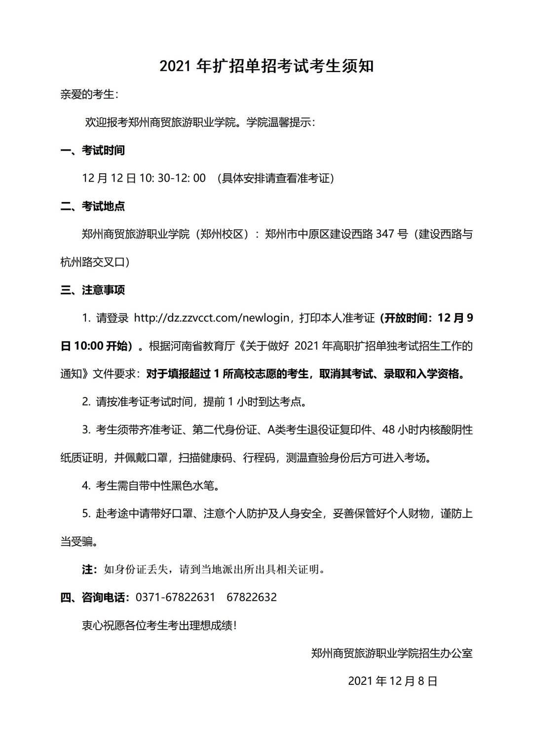 2021年扩招单招考试考生须知