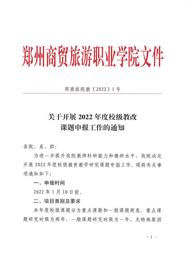 郑州商贸旅游职业学院关于开展2022年度校级教改课题申报工作的通知