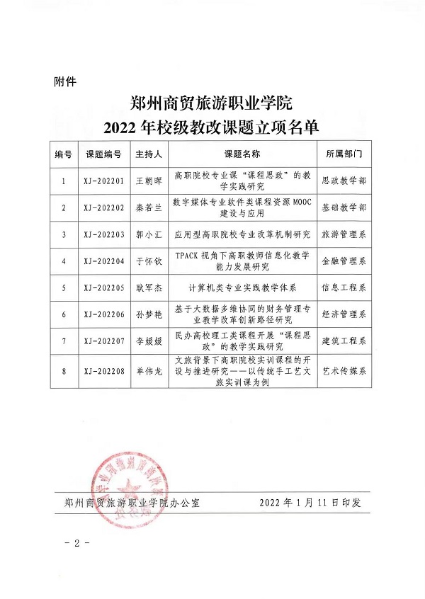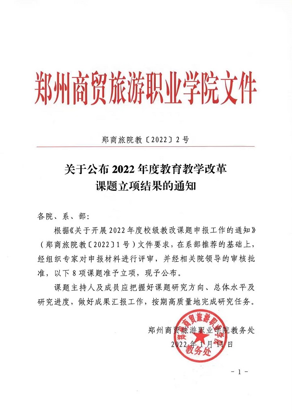 下一篇:郑州商贸旅游职业学院关于开展2022年度校级教改课题申报工作的通知