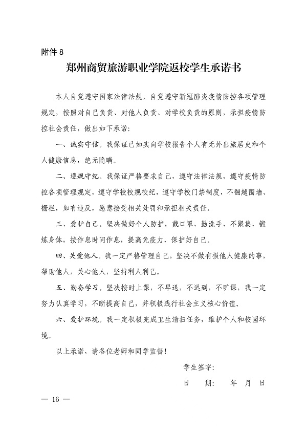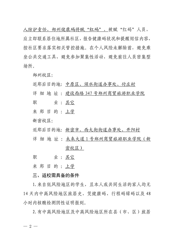 郑州商贸旅游职业学院2022年春季学期学生返校通知
