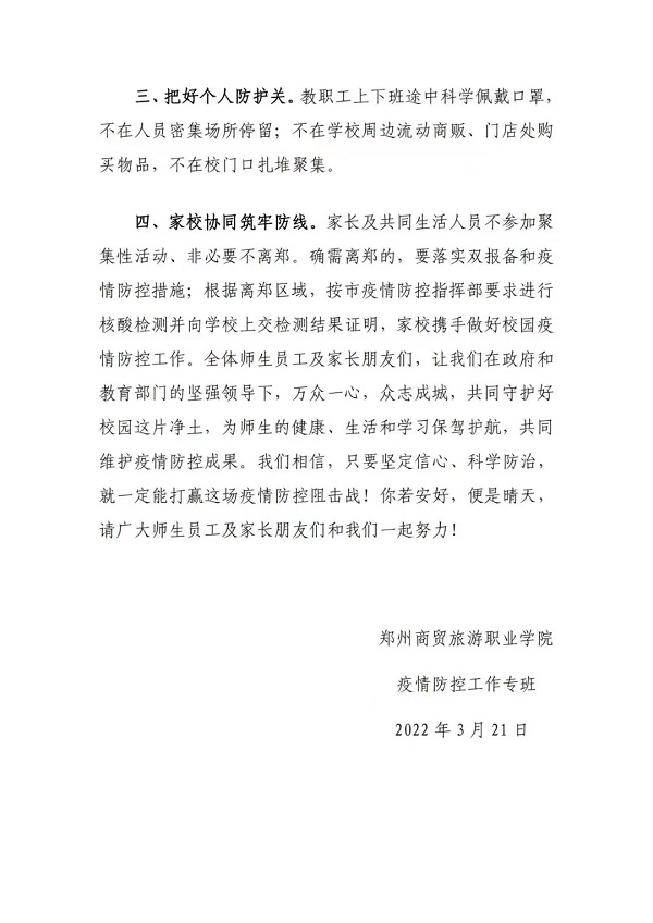 上一篇:郑州商贸旅游职业学院关于加强校园封闭管理的紧急通知