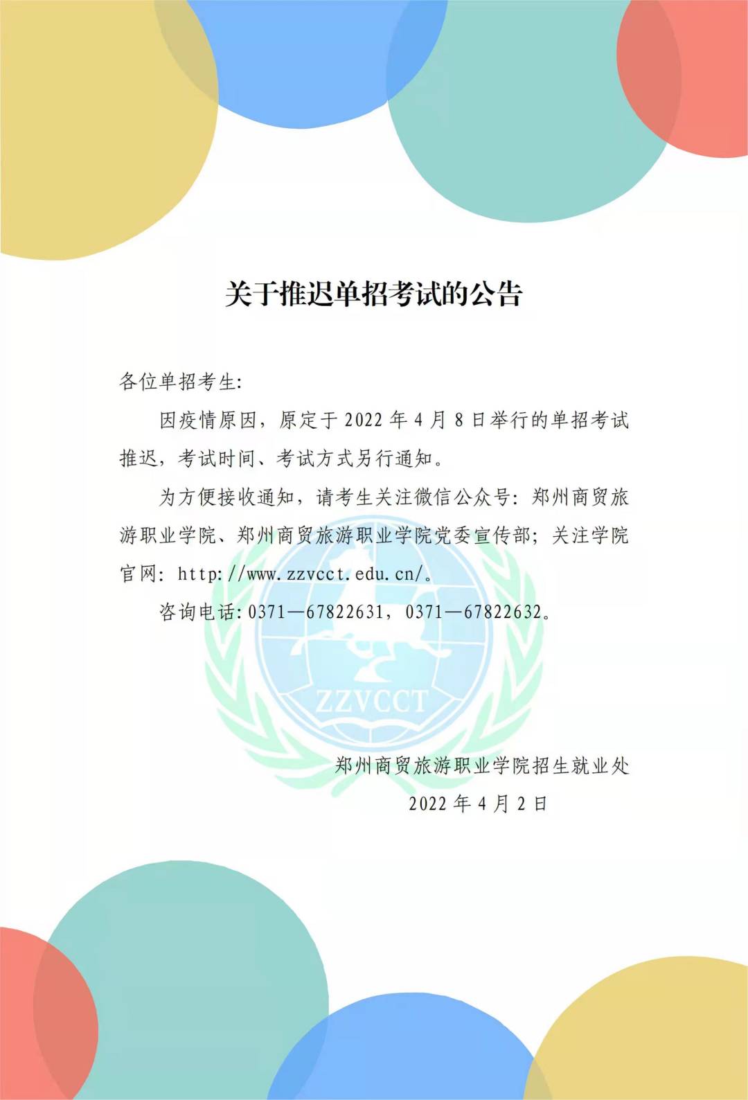 关于推迟单招考试的通知