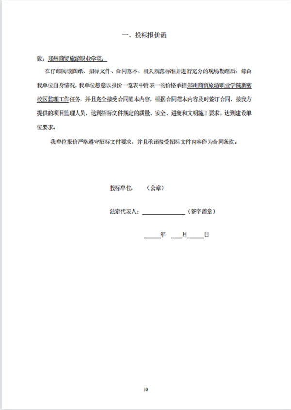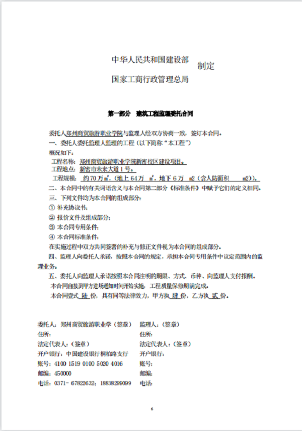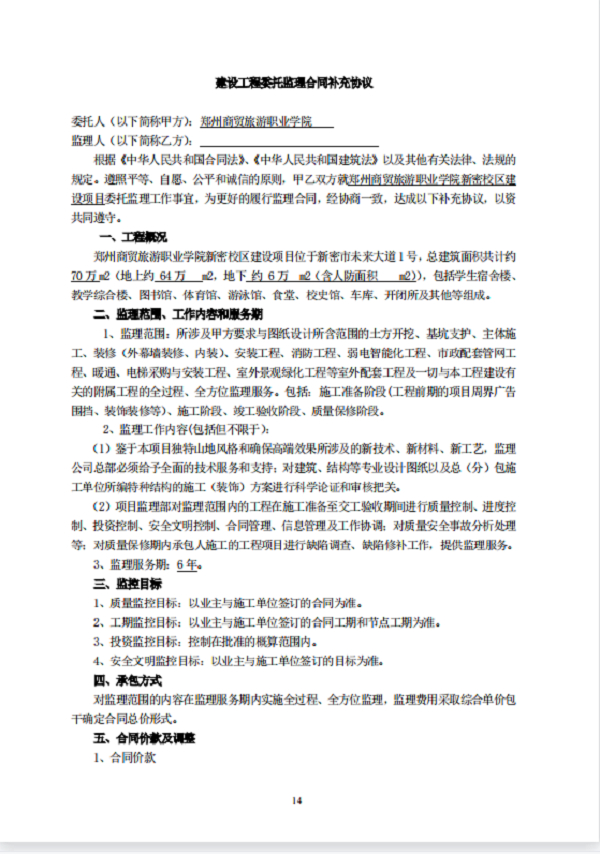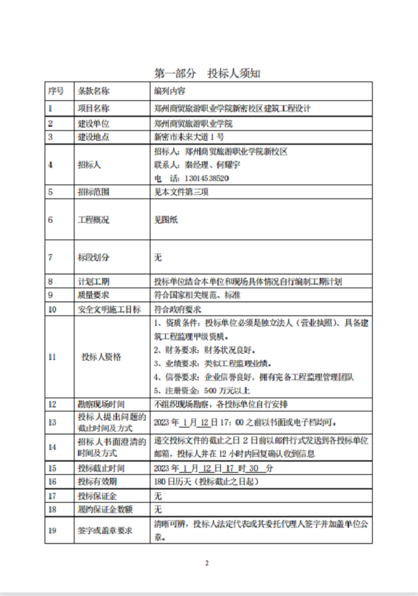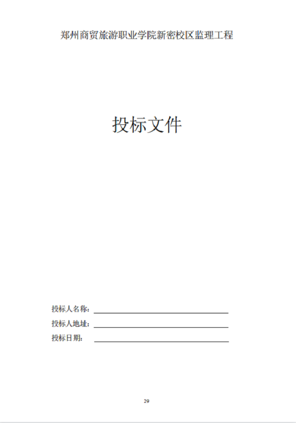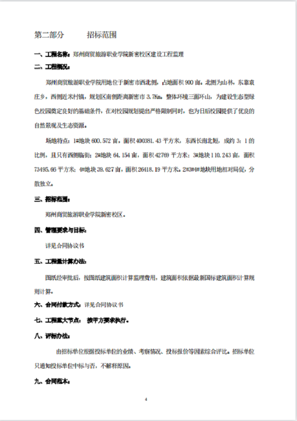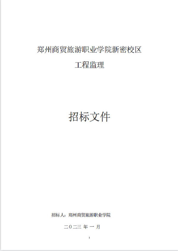 郑州商贸旅游职业学院新密校区 工程监理 招标文件