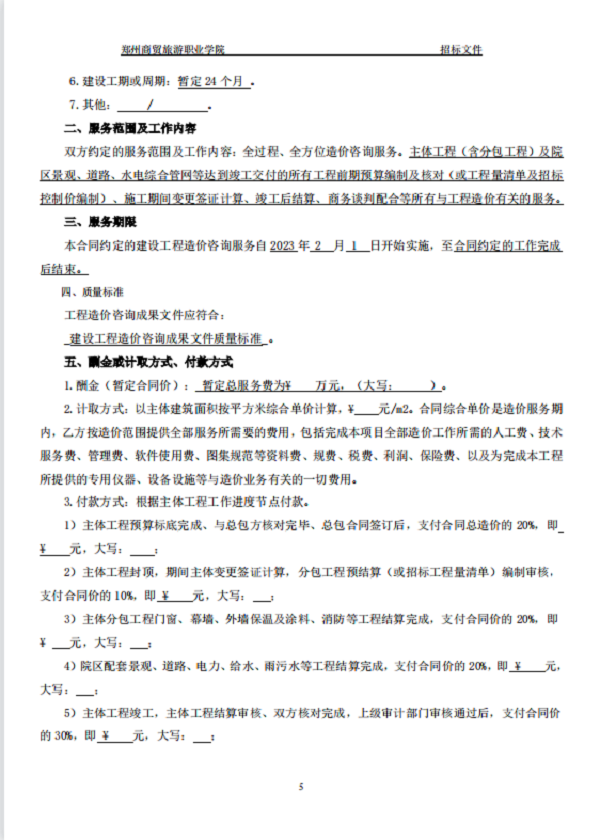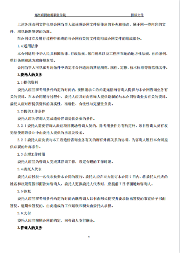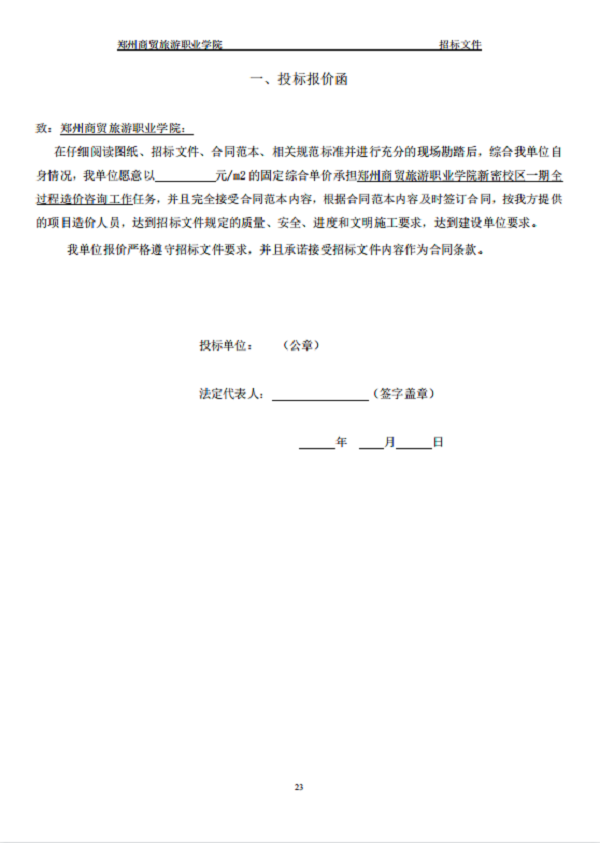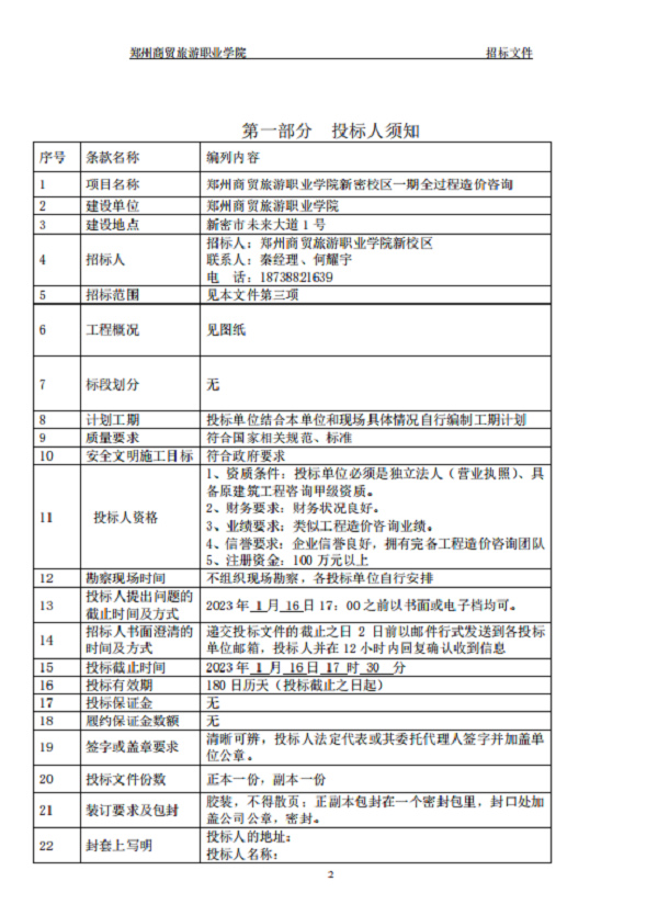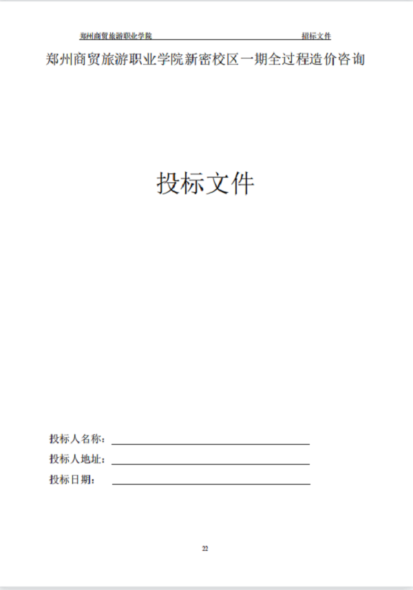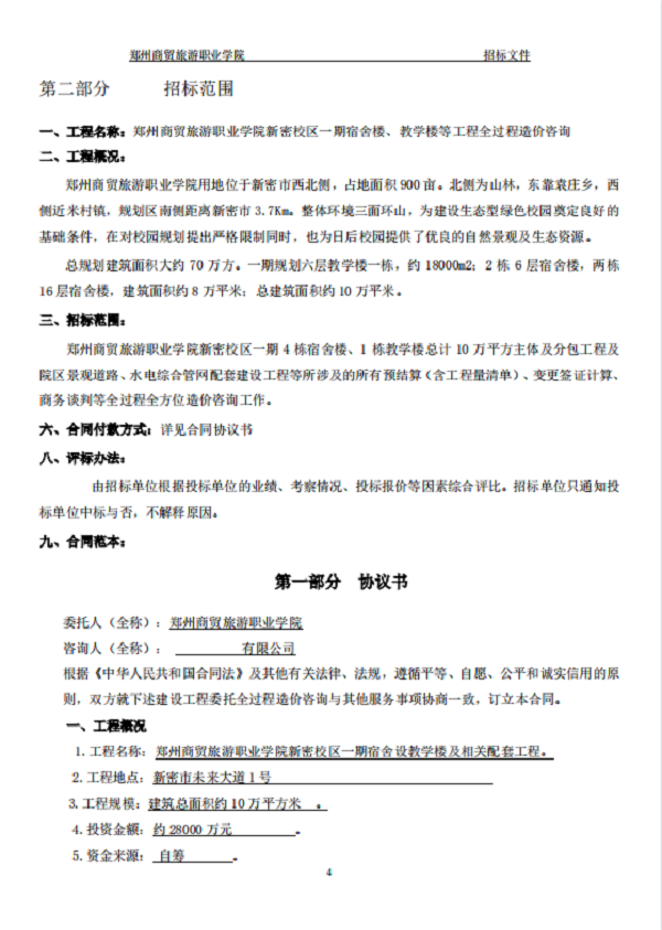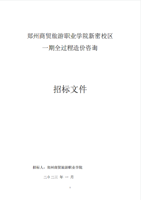 郑州商贸旅游职业学院新密校区 一期全过程造价咨询 招标文件