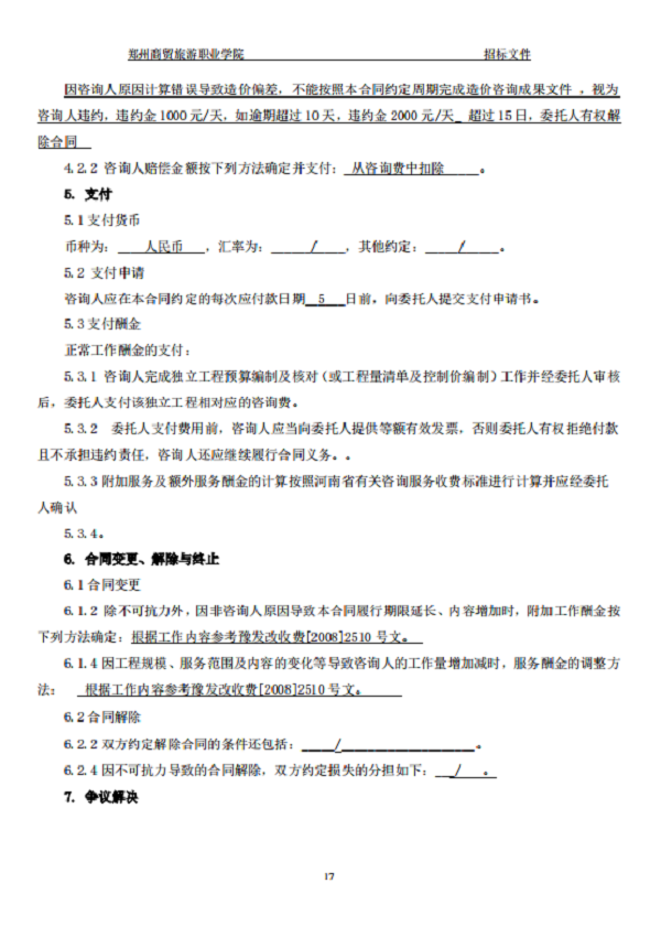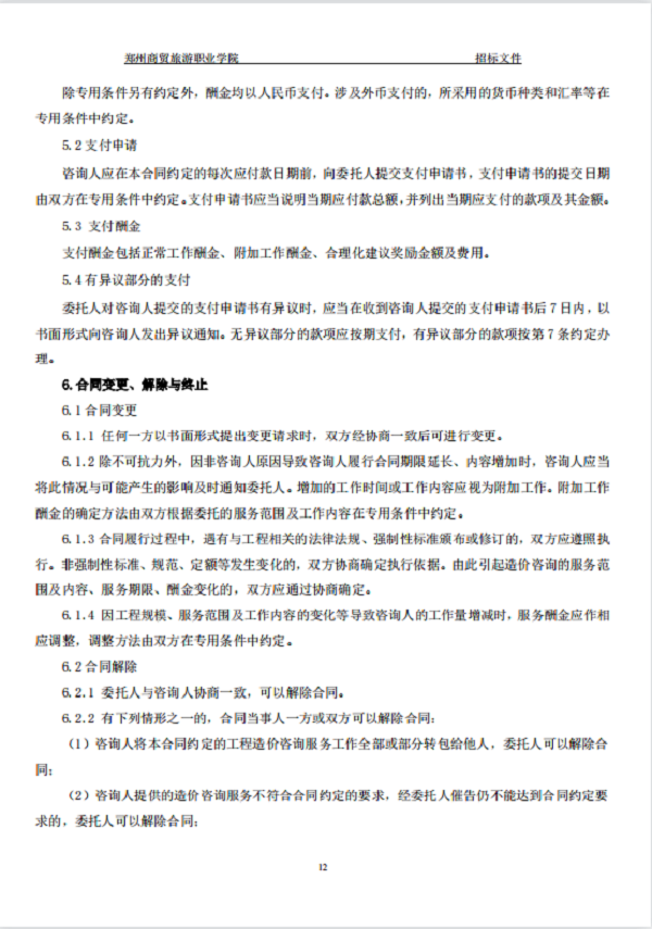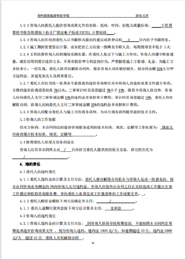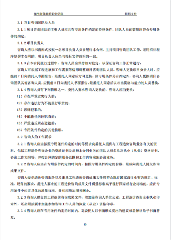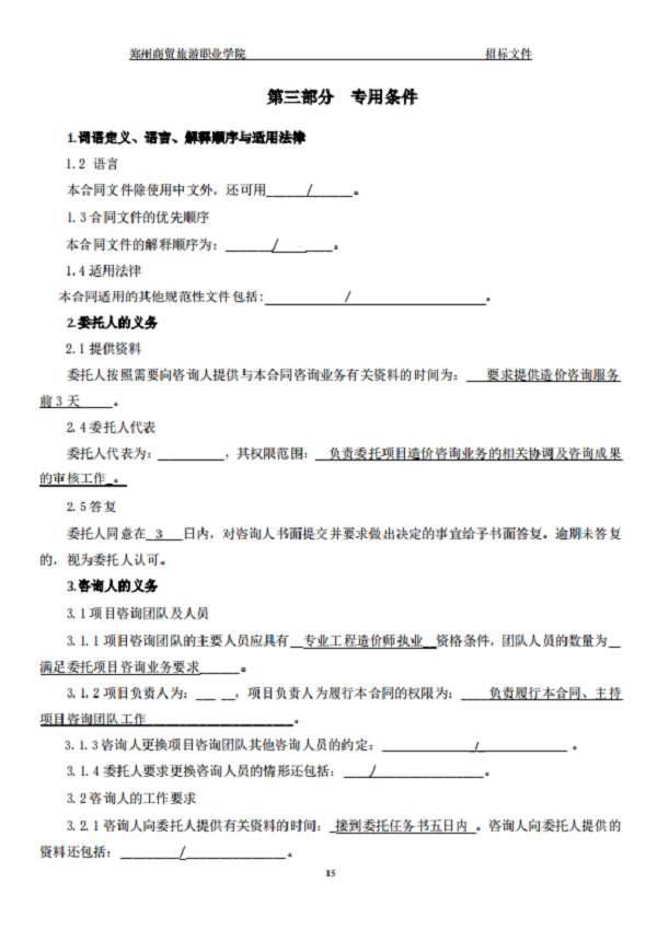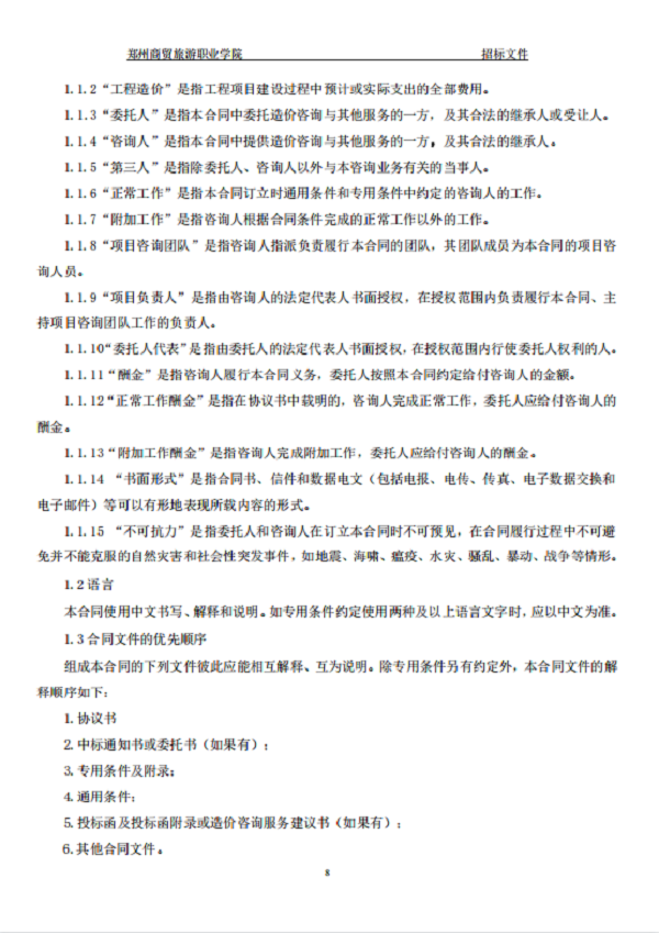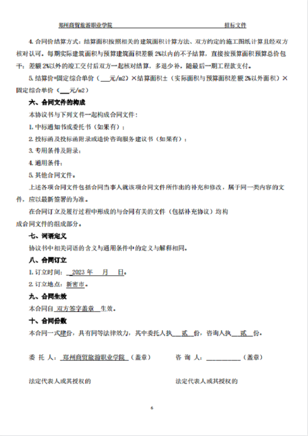 郑州商贸旅游职业学院新密校区 一期全过程造价咨询 招标文件