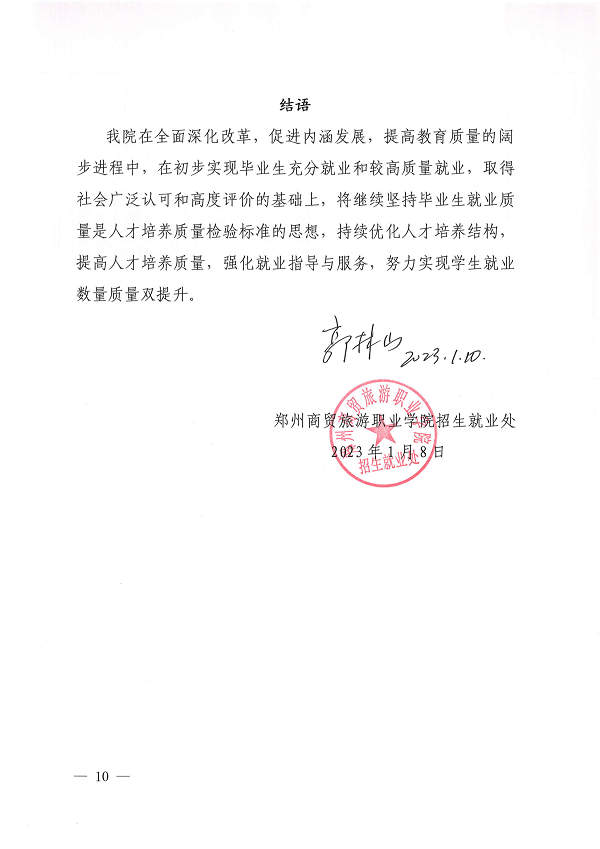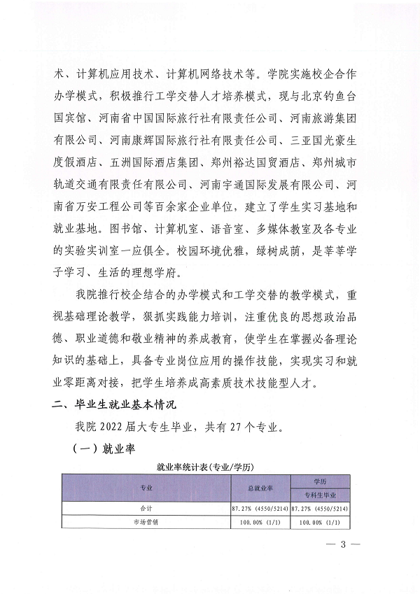 郑州商贸旅游职业学院2022届毕业生就业质量年度报告