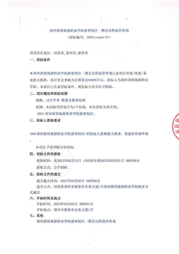 郑州商贸旅游职业学院新密校区一期全过程造价咨询