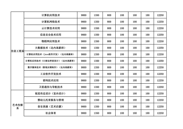 郑州商贸旅游职业学院2022级第一学年收费标准