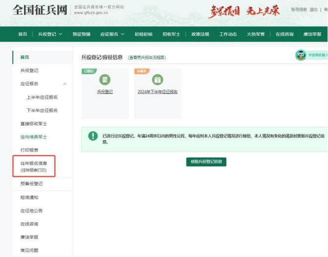 2021年报名信息可点击页面上方“2021年上半年应征报名下方的表格打印”或者页面左侧“往年报表打印”。