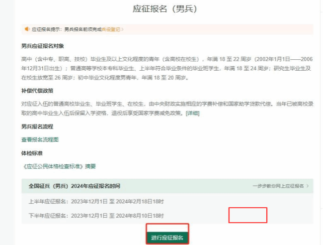 1、在全国征兵网(https://www.gfbzb.gov.cn/)上,点击应征报名(男兵);