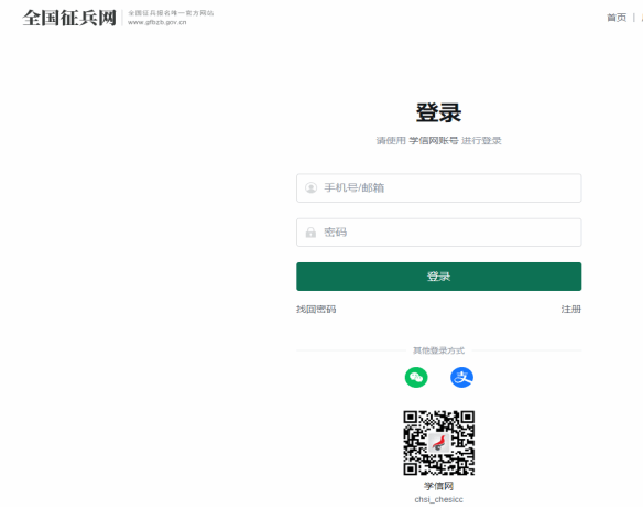 注:如忘记自己的账号或密码,点击“找回用户名”或“找回密码”,按所提示流程操作;如应征入伍时由当地武装部报名,自己不清楚全国征兵网的账号及密码,则向应征入伍地武装部咨询账号及密码事宜。
