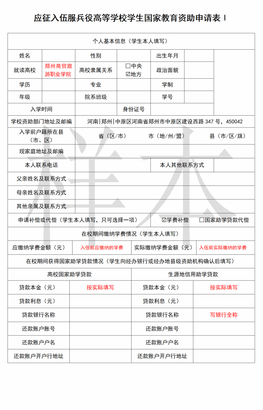 附件:1.《应征入伍服兵役高等学校学生国家教育资助申请表I》填写及下载流程