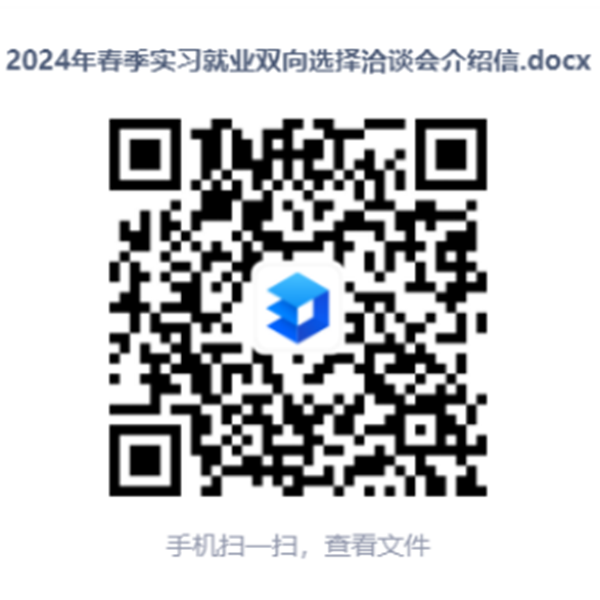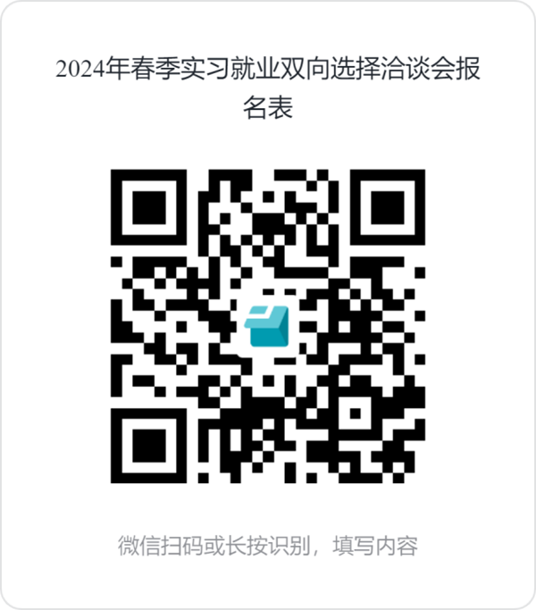 1.请参会单位扫描“2024年春季实习就业双向选择洽谈会”二维码,按要求准确填写单位信息、上传相关资质材料后点击“提交”(报名时间2024年4月30日18:00—5月5日18:00)。